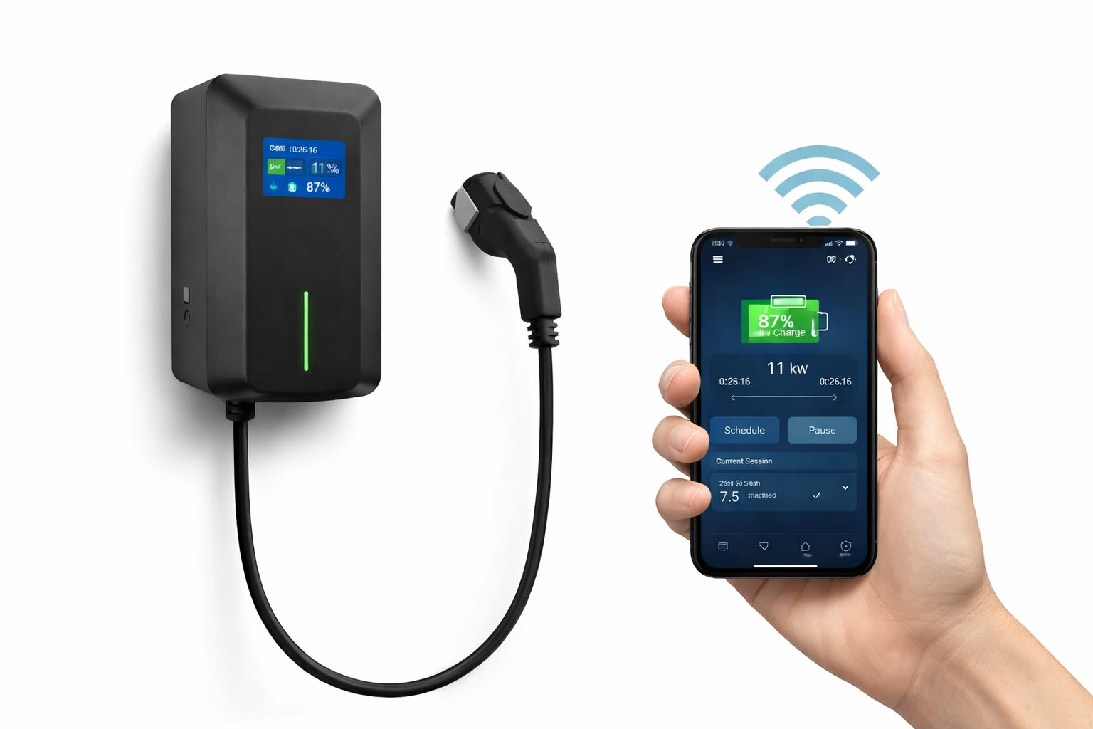 Noen bokser viser status og ladeeffekt direkte på enheten.